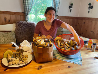 Die heutigen Bilder stammen ebenfalls von einem Gast aus dem kleinen Ferienhaus REHTNYG. Rieke schickt uns ihre schönen Pilzbilder. Die Bilder hauen mich vom Hocker! So viele verschiedene Pilze, die ich mich niemals getraut hätte zum Verzehr mitzunehmen. Da muss ich doch gleich mal nachbohren: "Woher kennst du dich so gut aus, Rieke?"